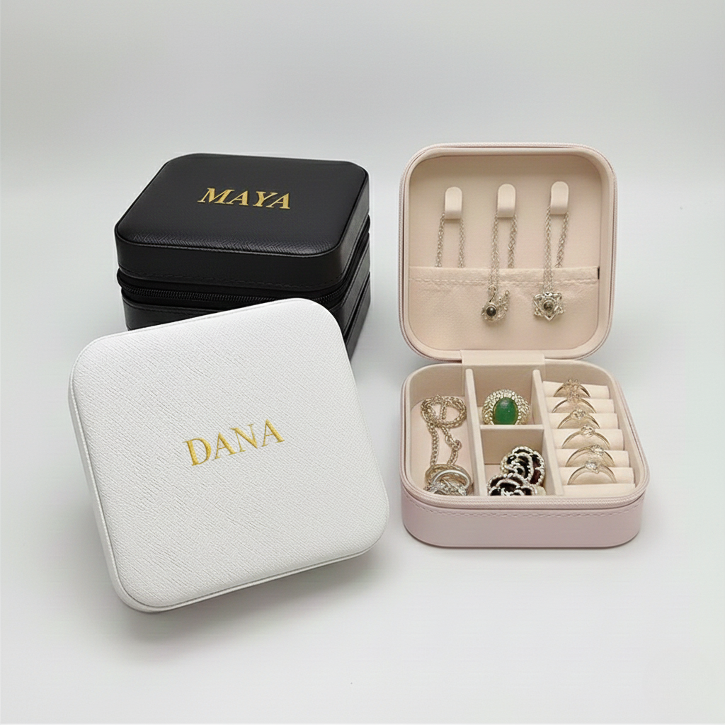 תיק תכשיטים יוקרתי עם חריטת שם אישית – מתנה מרשימה ומיוחדת